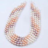 Perola Arroz 6-7 mm Branca,Rosa,Lavanda - 1 fio - 38 cm